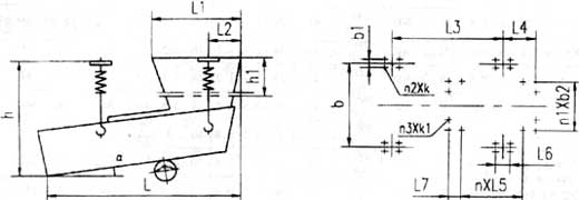 | 1 | 1251 | 1200 | 1951 | 1330 | 1340 | 400 | 516 | 490 | 放礦漏斗自配,b-吊掛螺栓寬度方向中心距 | ||