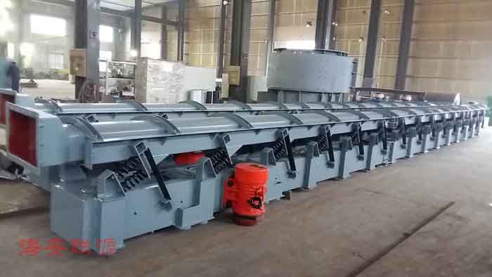 慣性振動輸送機主要是利用振動電機為驅動源長距離的輸送粉狀,顆粒狀物料。慣性振動輸送機利用料槽的振動使料槽中的物料從入料口快速輸送到出料口,可以用來輸送塊狀、顆粒狀或粉狀、常溫或高溫的各種物料。 慣性振動輸送機有敞開式、封閉式兩種,料槽橫截面可以做成圓形、矩形和梯形等多種型式。料槽的進料和出料也可根據需要制成一點進料、一點出料,一點進料、多點出料,多點進料、一點出料等多種型式。輸送距離較長時可用多臺輸送機連接起來輸送。
