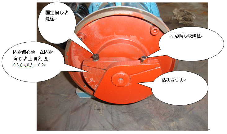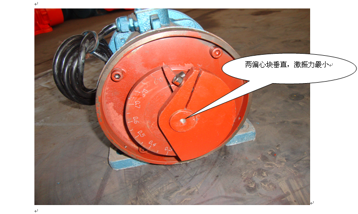 三:松開活動(dòng)偏動(dòng)塊上的固定螺栓,調(diào)整活動(dòng)偏心塊與固定偏心塊之間的夾角,當(dāng)兩偏心塊完全重合時(shí),振動(dòng)電機(jī)的激振力大,當(dāng)兩偏心塊垂直時(shí),振動(dòng)電機(jī)的激振力小。.png)